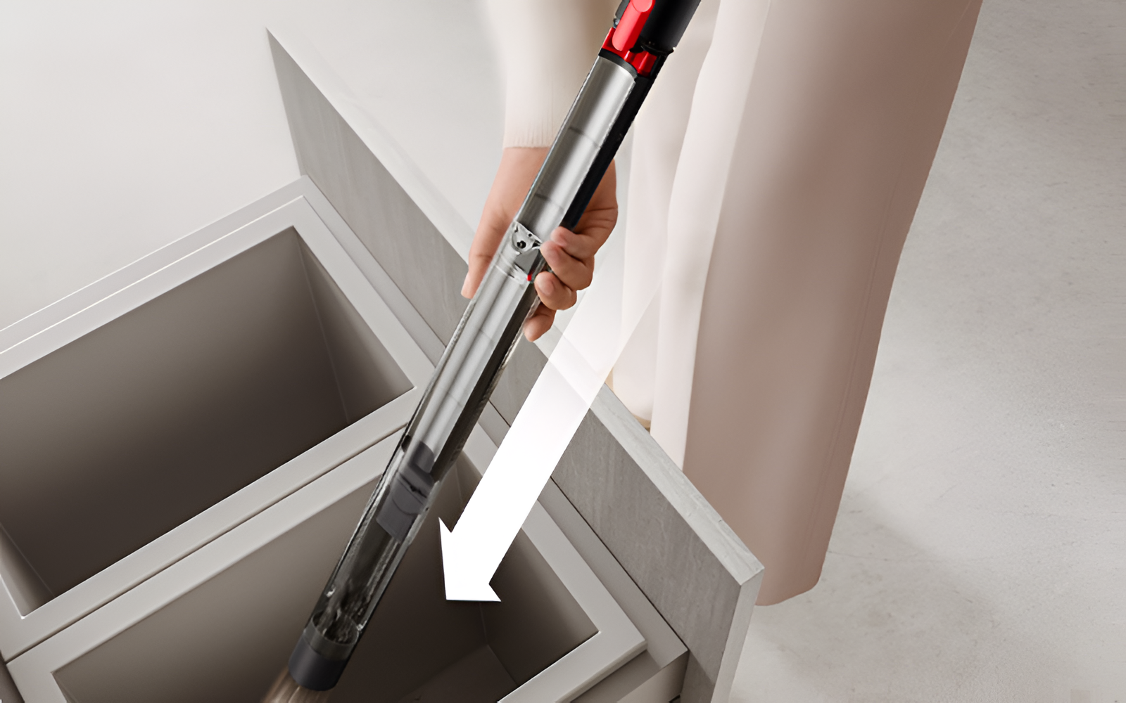 την συμπιεσμένη σκόνη βαθιά μέσα στον κάδο σας. Για πιο υγιεινό άδειασμα.