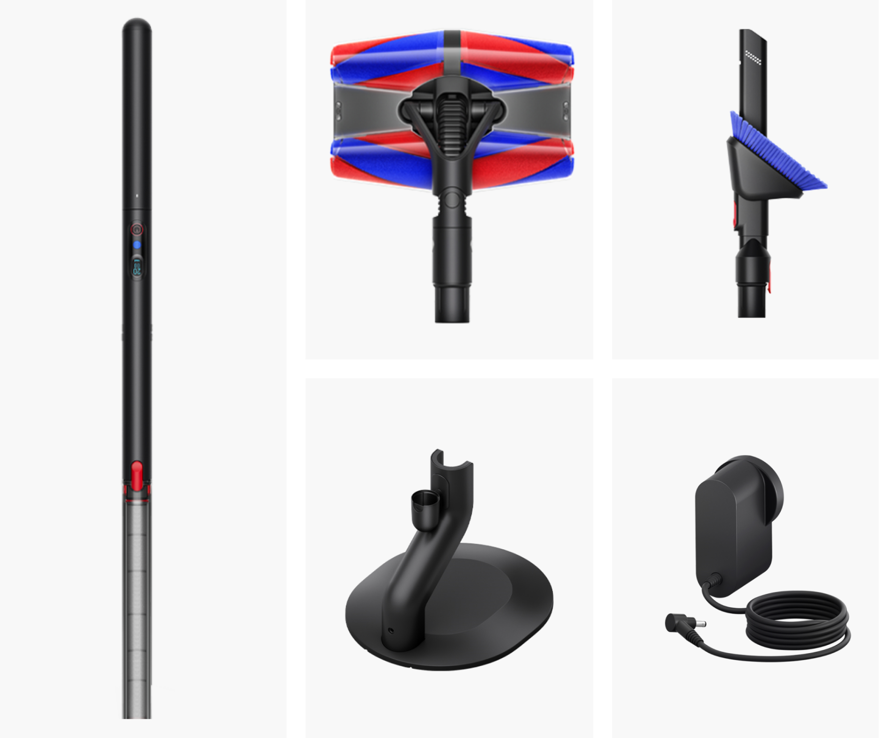 - Εξαρτήματα: Κεφαλή καθαρισμού Fluffycones™, σύνθετο εξάρτημα για ξεσκόνισμα και γωνίες, μαγνητική βάση φόρτισης, φορτιστής