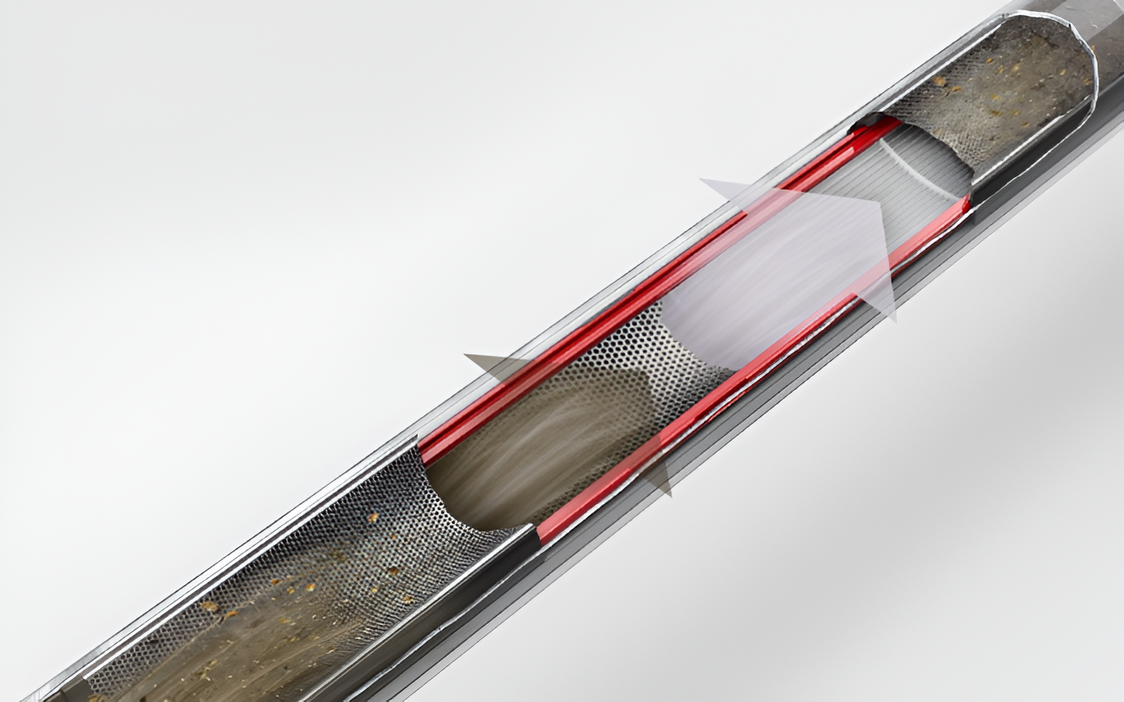 βαθιά μέσα στις ρωγμές. Με αντίθετα περιστρεφόμενους κώνους μπροστά και πίσω για να κατευθύνουν
