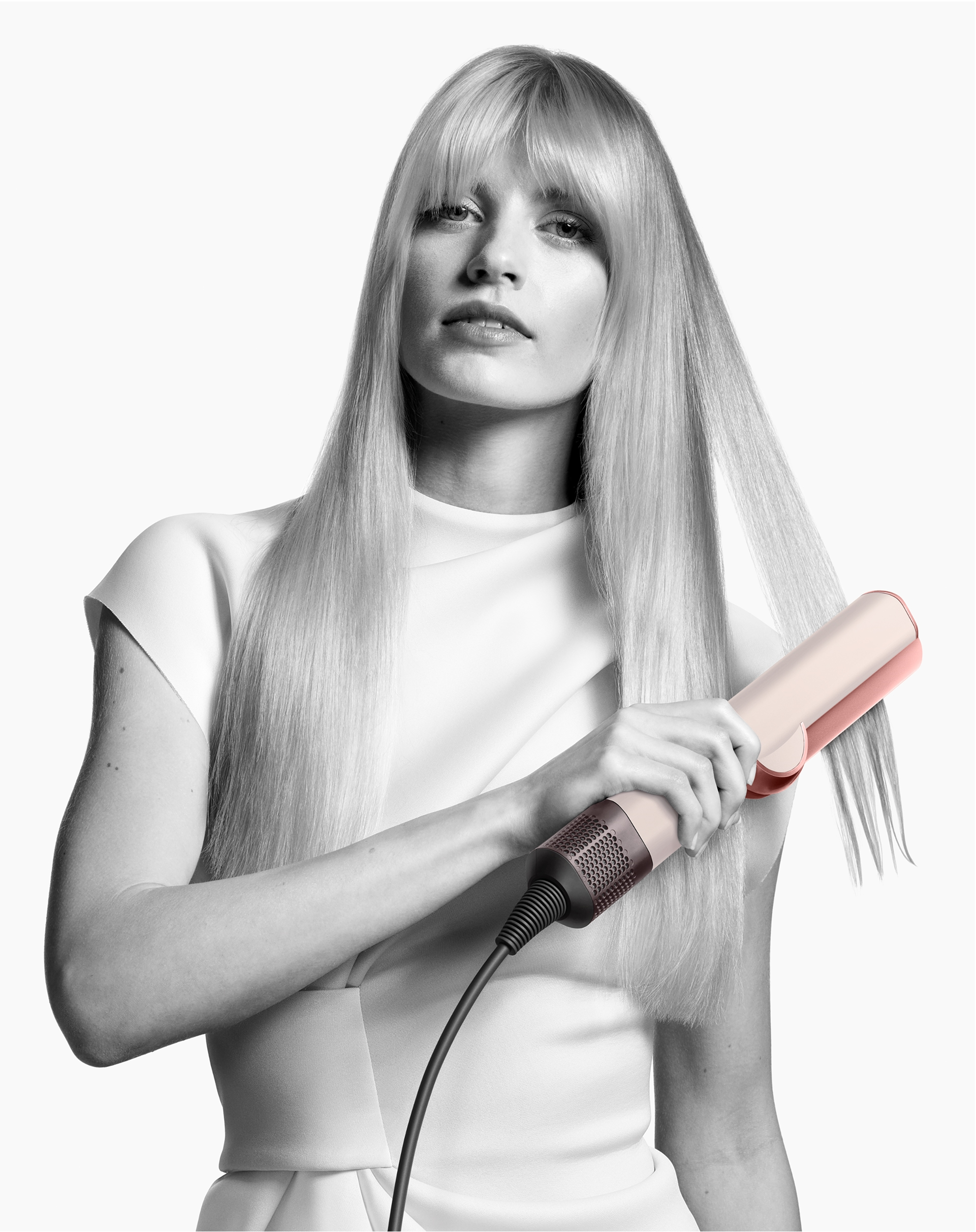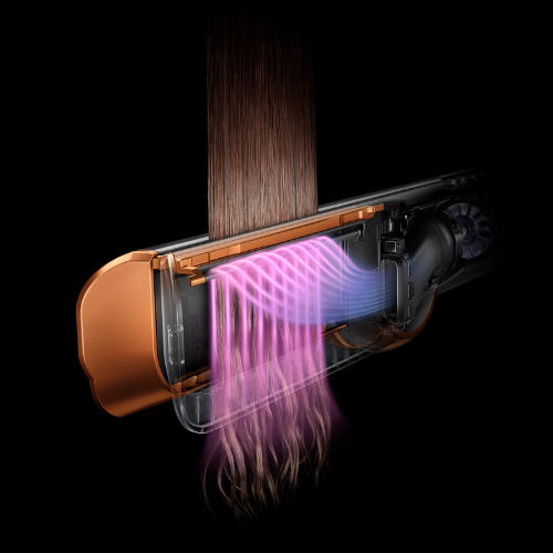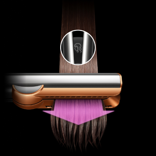 - Μοτέρ Dyson Hyperdymium™: Το πιο ισχυρό και ελαφρύ μοτέρ της Dyson. Δημιουργεί τη ροή αέρα υψηλής ταχύτητας και υψηλής πίεσης που απαιτείται για να στεγνώσει και να ισιώσει τα μαλλιά ταυτόχρονα