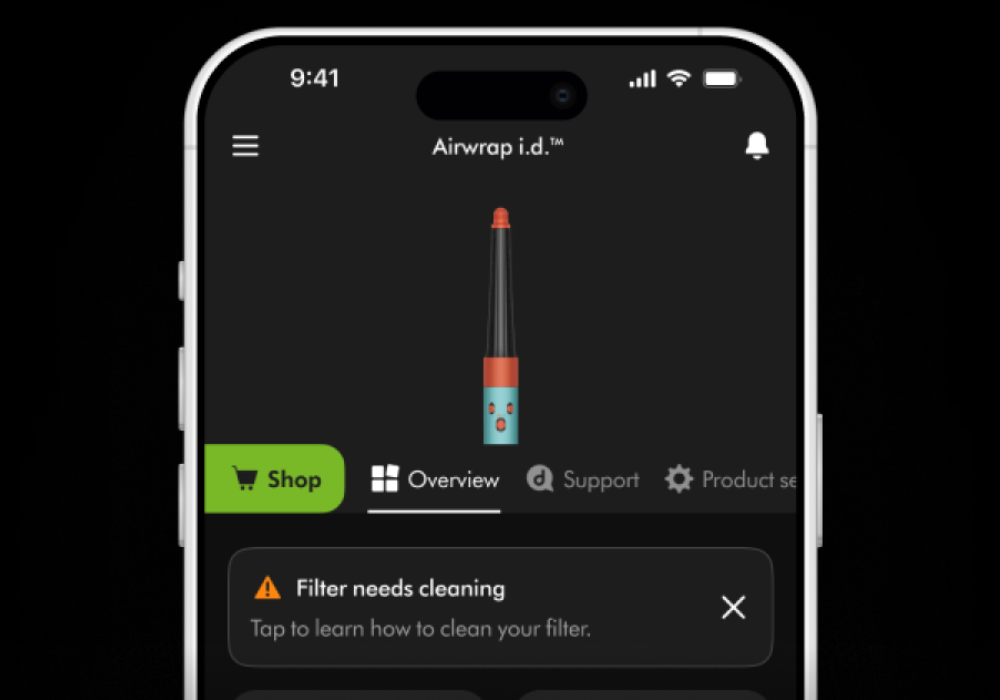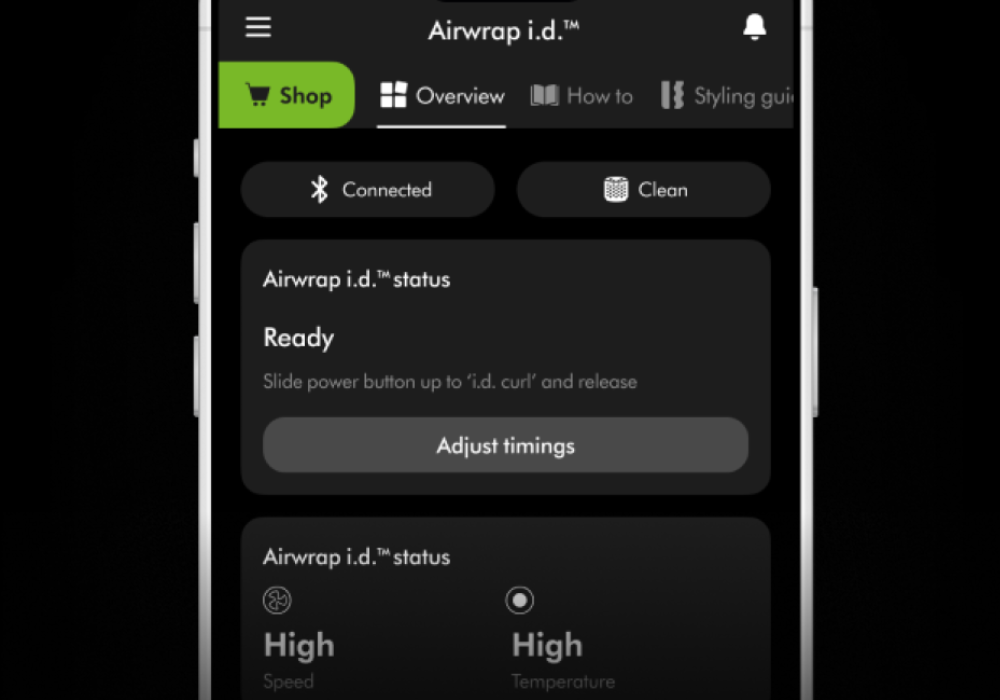 Ρυθμίζετε το προφίλ των μαλλιών σας, το επίπεδο δεξιοτήτων και τους στόχους styling στην εφαρμογή MyDyson™ και η συσκευή προγραμματίζει έξυπνα την ιδανική εξατομικευμένη λειτουργία δημιουργίας μπούκλας για να τυλίξετε, να δημιουργήσετε και να ολοκληρώσετε κάθε μπούκλα με το πάτημα ενός κουμπιού. Η σύνδεση με την εφαρμογή, σας προσφέρει styling προσαρμοσμένο στον τύπο των μαλλιών σας και περιεχόμενο που είναι σχετικό με τον τύπο των μαλλιών σας, live ενημερώσεις προϊόντων, ειδοποιήσεις αντιμετώπισης προβλημάτων και συντήρησης φίλτρου.