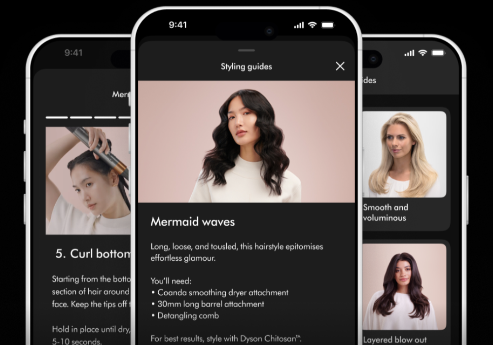 Θέλετε να δοκιμάσετε ένα νέο look? Η εφαρμογή MyDyson™ διαθέτει δεκάδες οδηγούς styling