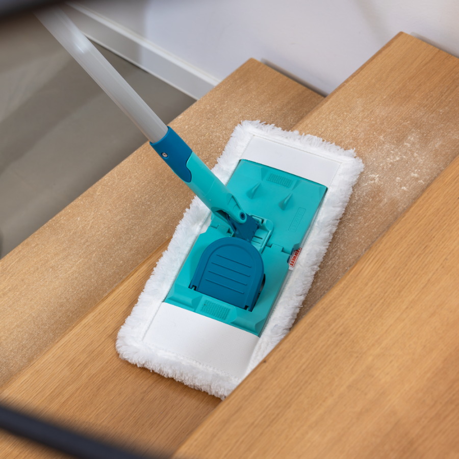 - Ξεσκονιστήρι δαπέδου με περιμετρική κεφαλή από 100% μικροΐνες για καθαρισμό σκληρών δαπέδων, σοβατεπί και ακμών σε ένα μόνο βήμα.
